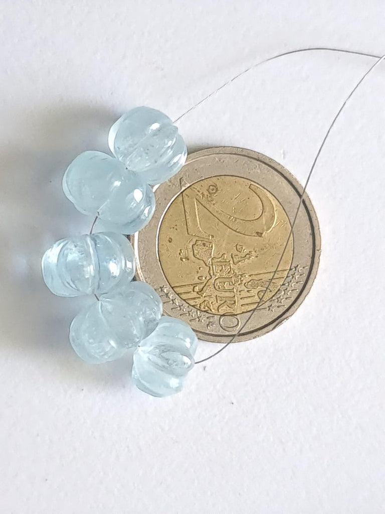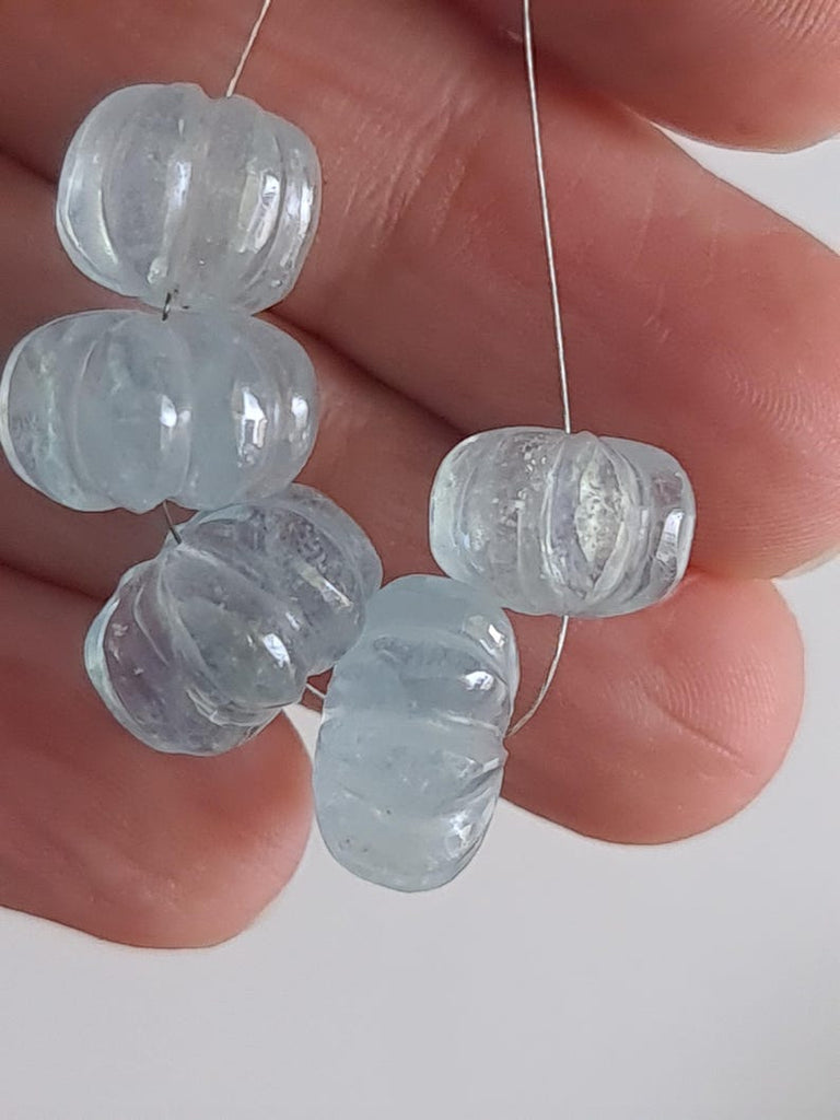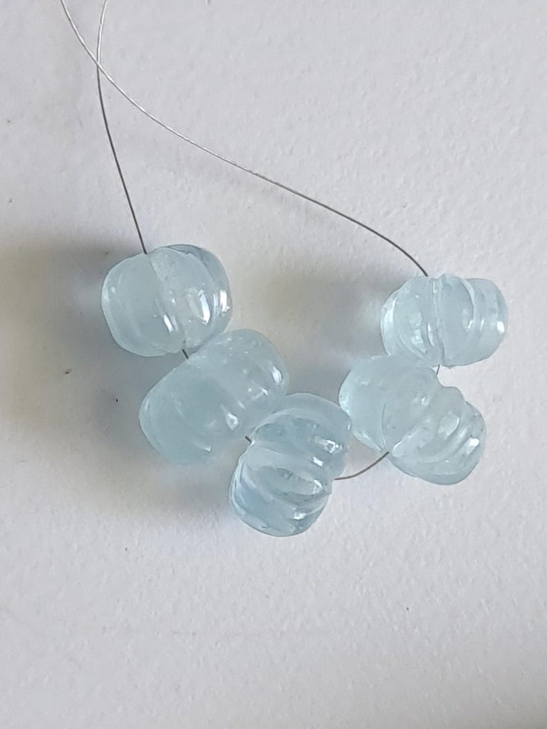 This listing is for 10-12mm Aquamarine Melon Beads, 5Pcs Aquamarine Carved Melon Beads, Natural Aquamarine For Jewelry, Aquamarine for Necklace - PPH40