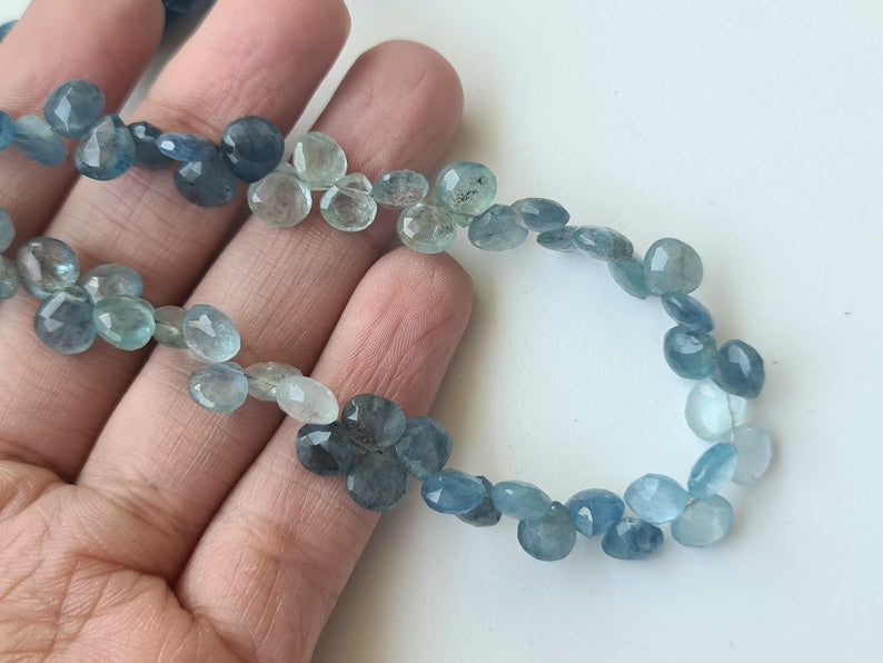6-7mm Moss Aquamarine Faceted Heart Beads, Natural Moss Aquamarine Heart Briolettes for Necklace & Jewelry (10Pcs TO 20Pcs) - PAG27
