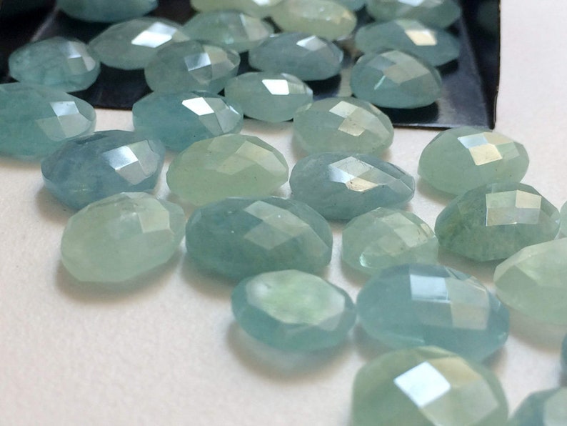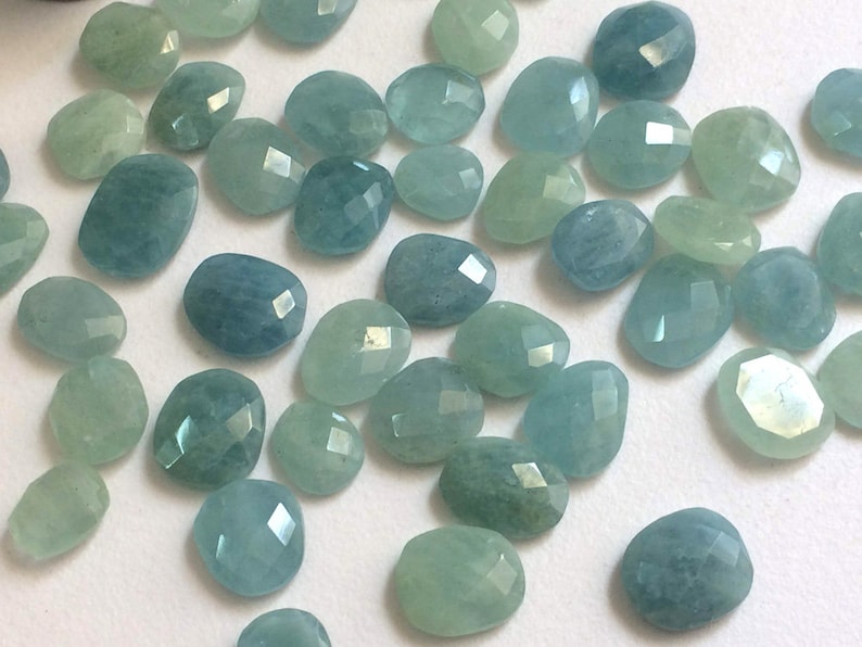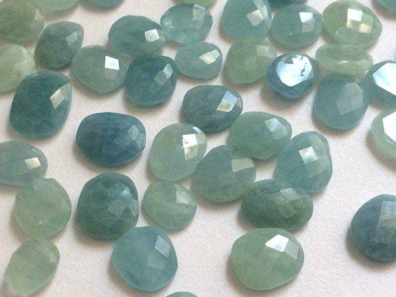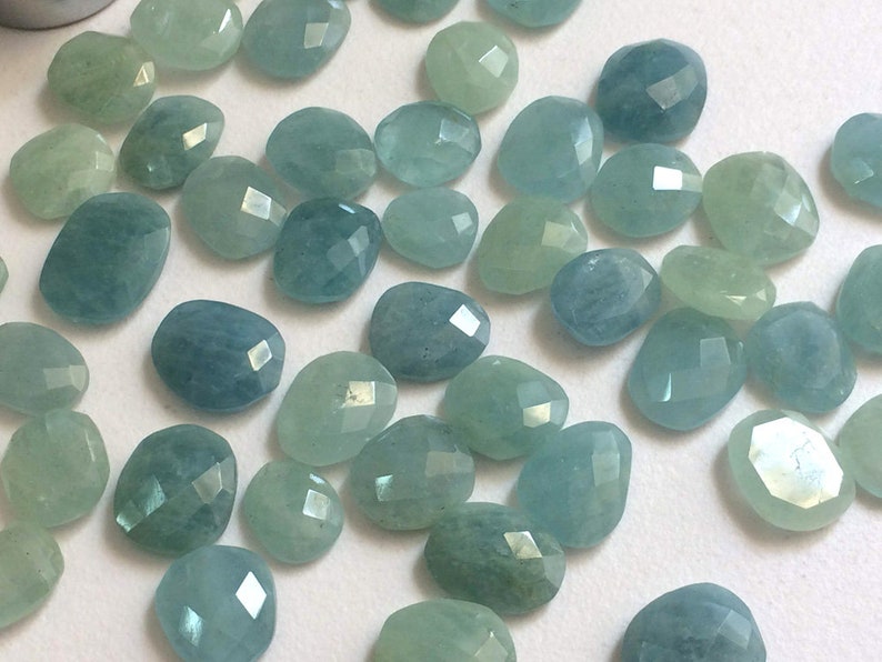 This listing is for 11-14mm Aquamarine Rose Cut Cabochons, Natural Aquamarine Flat Back Cabochons, Loose Faceted Aquamarine Gemstones (5Pcs To 10Pcs Options)