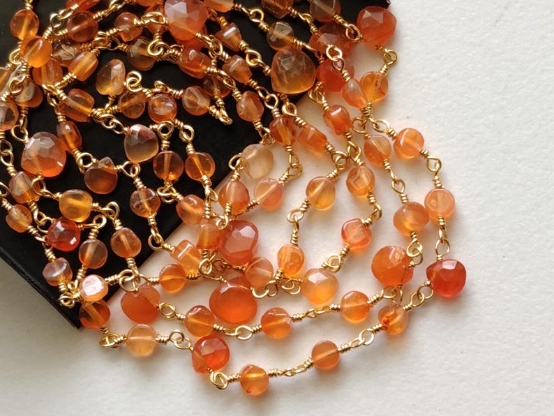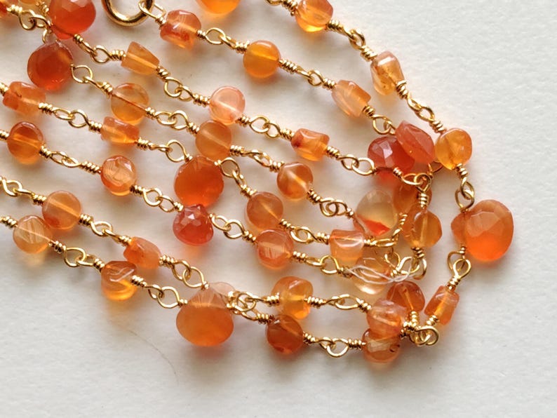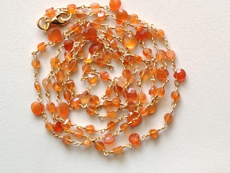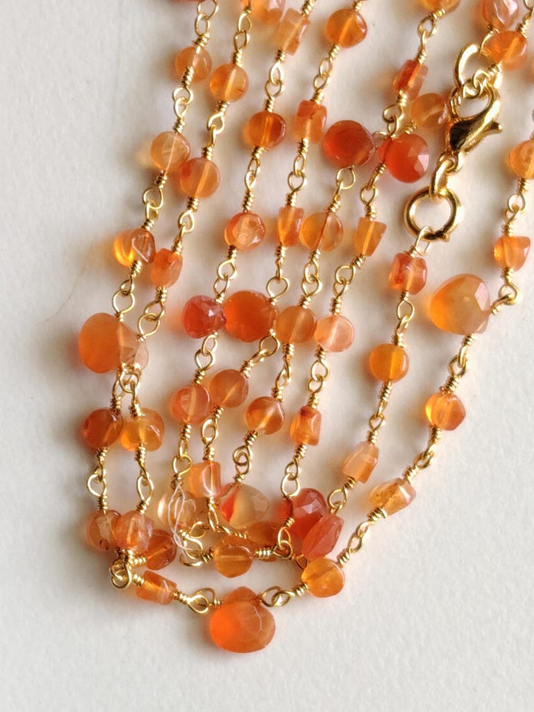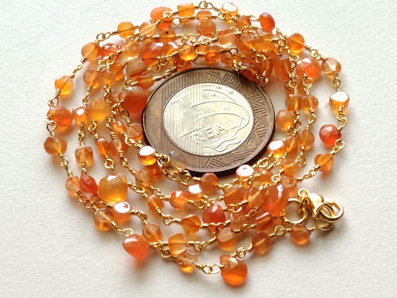 Carnelian Faceted Coin 3-3.5mm & Heart 5mm Wire Wrapped Beaded Rosary Chain 925 Silver Rosary Chain, Colorful Necklace - PSG373