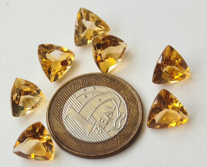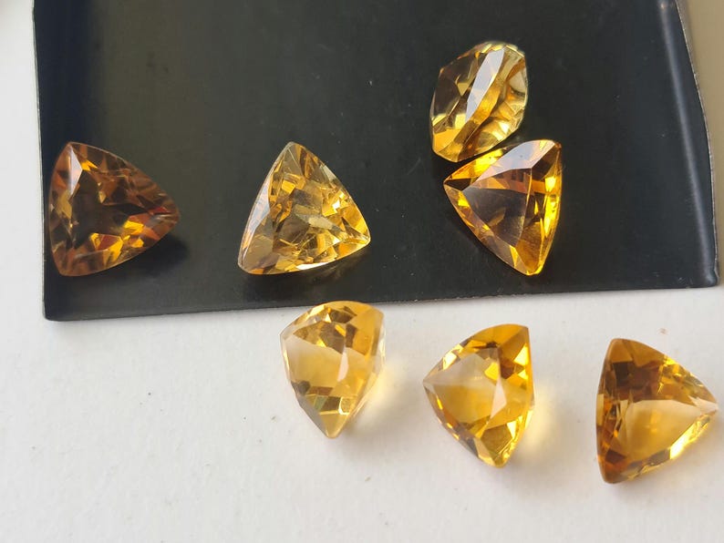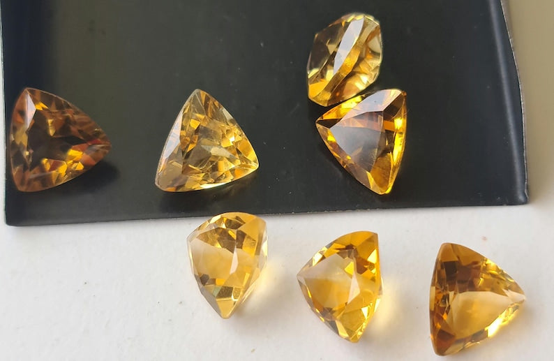 This listing is for 10.5-11mm Citrine Faceted Trillion Cut Stones, Natural Citrine, Loose Ring Size, Citrine For Jewelry, Beautiful AAA Citrine (1Pc to 2Pc)