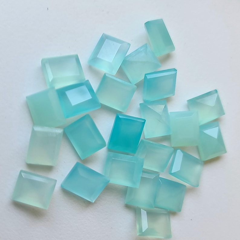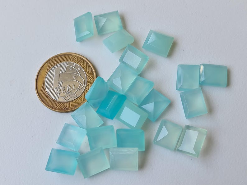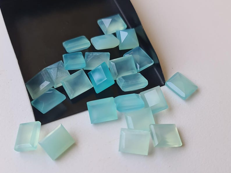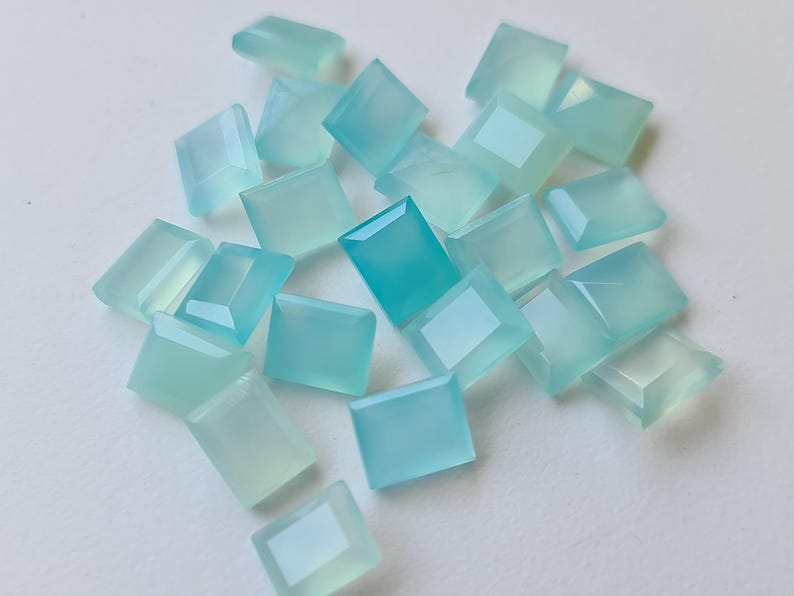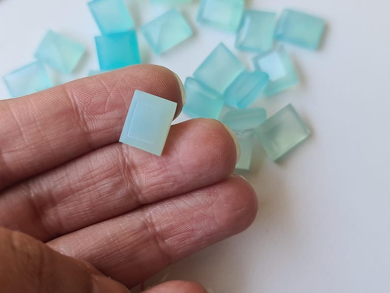 This listing is for 11mm Aqua Chalcedony Emerald Cut, Aqua Blue Cabochons, Loose Aqua Chalcedony Gems, Aqua Rectangle Cabochons (5Pcs To 50 Pcs Options)