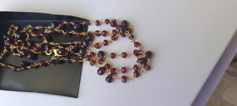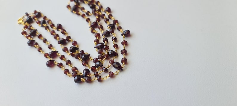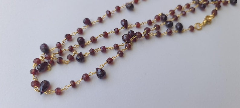 Garnet Faceted Rondelle 4mm & Drop 4x6-5x8mm Wire Wrapped Beaded Rosary Chain 925 Silver Garnet Rosary Chain, Garnet Necklace - PSG366
