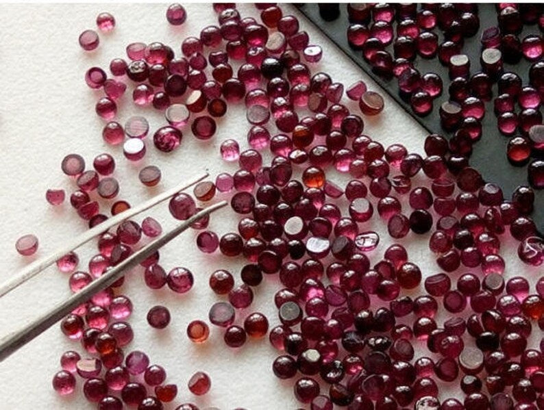 This listing is for 1.5-2.5mm Garnet Round Cabochons, Garnet Flat Back Plain Round Cabochons, Loose Garnet, Garnet For Jewelry (5Cts To 20Cts Options) - PS4000