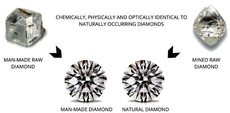 Lab Grown Diamonds Are Identical To Natural Diamonds. They Have the same Chemical Composition Properties Refractive Index. They are Eco Friendly Man made Diamonds also known as Green Diamonds.