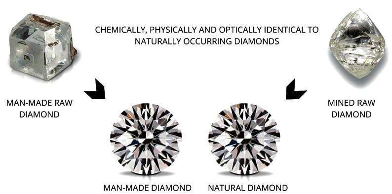 Lab Grown Diamonds Are Identical To Natural Diamonds. They Have the same Chemical Composition Properties Refractive Index. They are Eco Friendly Man made Diamonds also known as Green Diamonds.