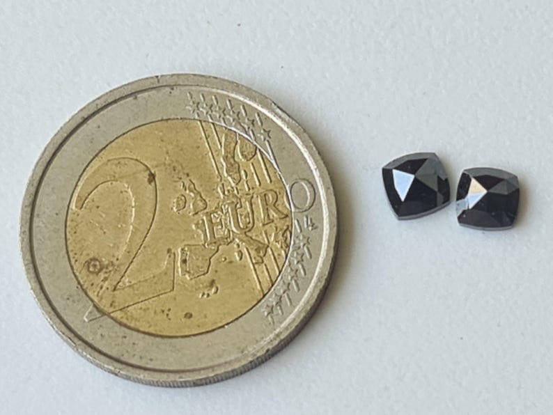 This listing is for Conflict Free 5mm Black Diamond Pair, Natural Black Square Shaped Rose Cut Diamond, Faceted Cushion Diamond Flat Back Cabochon for Earring - PDD776
