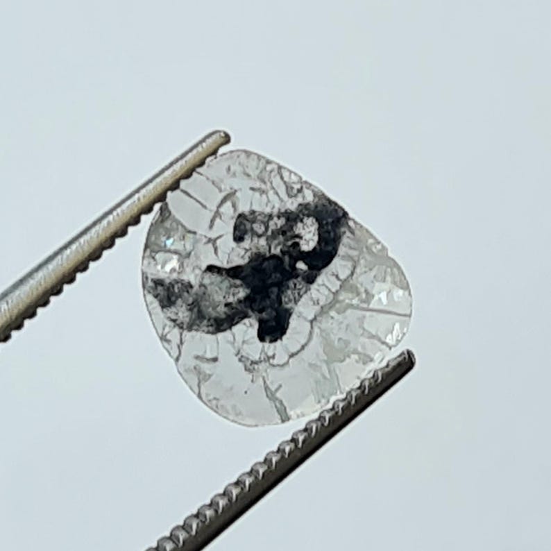 9.4x8.4mm Salt And Pepper Diamond Slice, 0.5 Ct Faceted Salt & Pepper Diamond Polki Slice Loose Jewelry - PDD886
