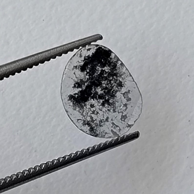 9.2x7.4mm Salt And Pepper Diamond Slice 0.40 Ct, Faceted Salt And Pepper Polki Loose Diamond Slice Jewelry - PDD880