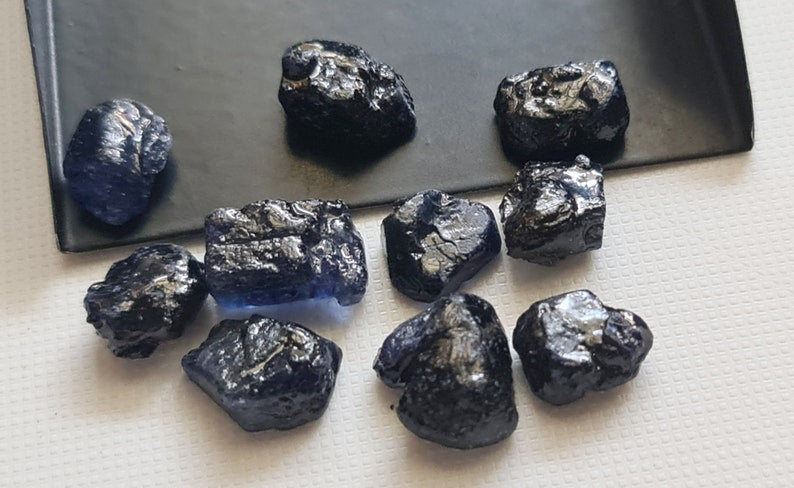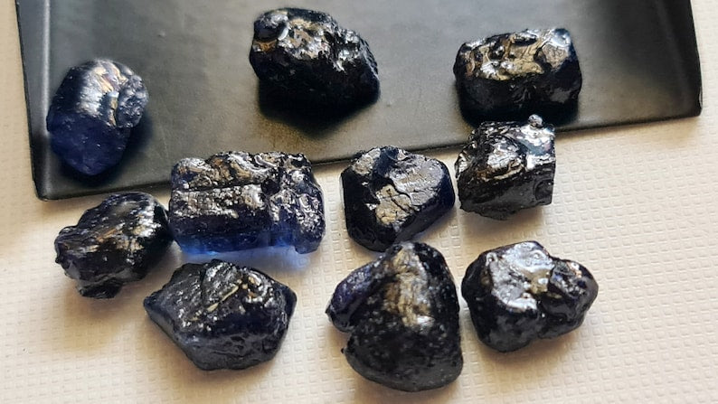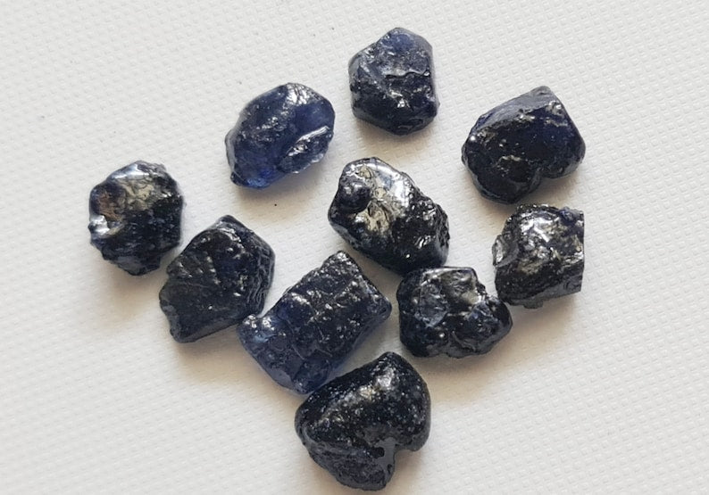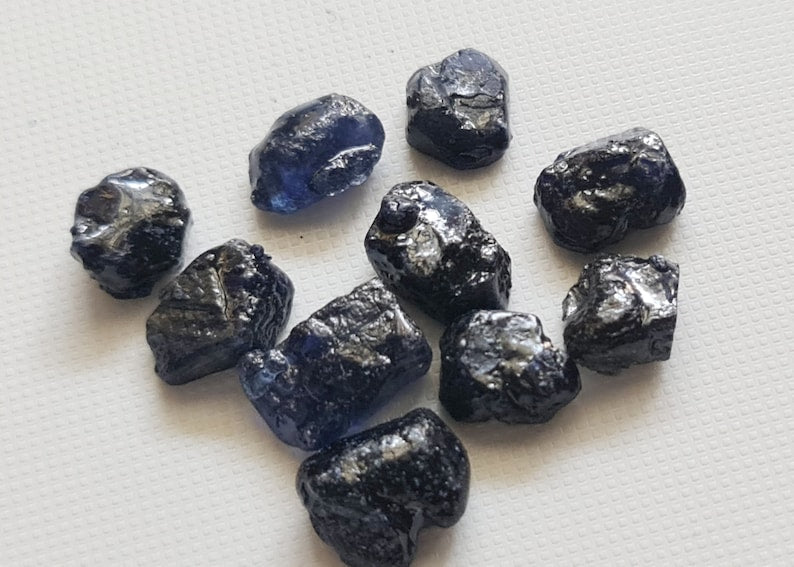 11-12mm Blue Rough Raw Sapphire Gemstone, Loose Raw Blue Sapphire Jewelry Stones, 2 Pcs - PDG358