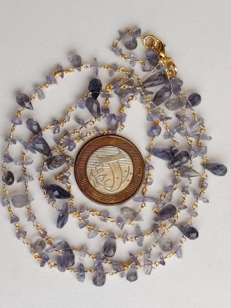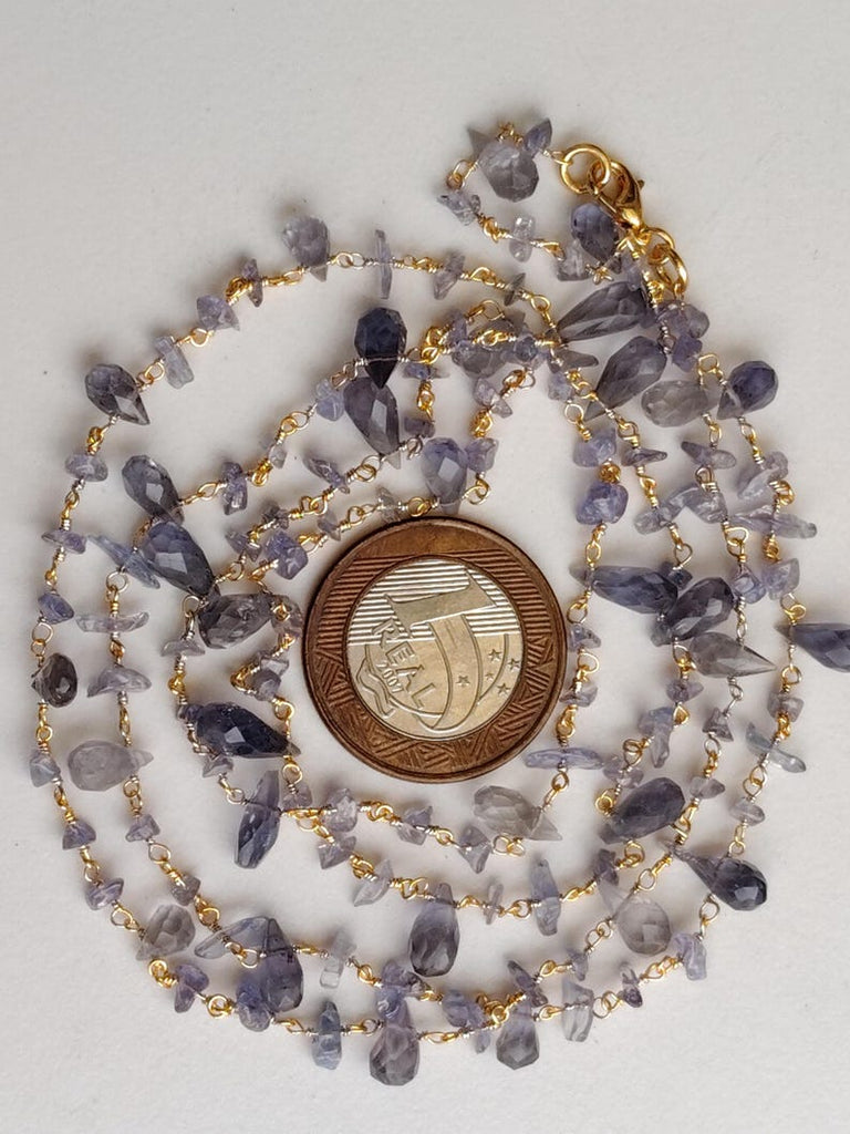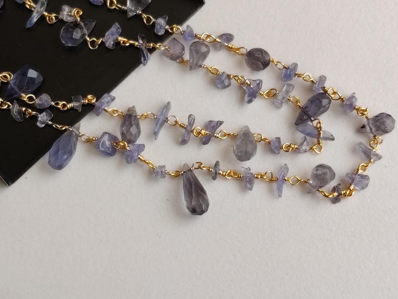 This listing is for Iolite Rough 3.5-7mm & Drop5x8mm Wire Wrapped Beaded Rosary Chain 925 Silver Rosary Chain, Colorful Necklace - PSG374