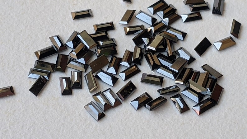 Black Tapered 4x2 mm Baguette Cut Rectangle Faceted Diamond for Earring-PDD836