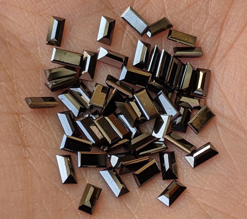 Conflict Free BLACK Tapered Baguette Diamond, Natural 4x2 mm Baguette Cut Diamond Rectangle Faceted Diamond for Earring, Matched Pair-PDD836