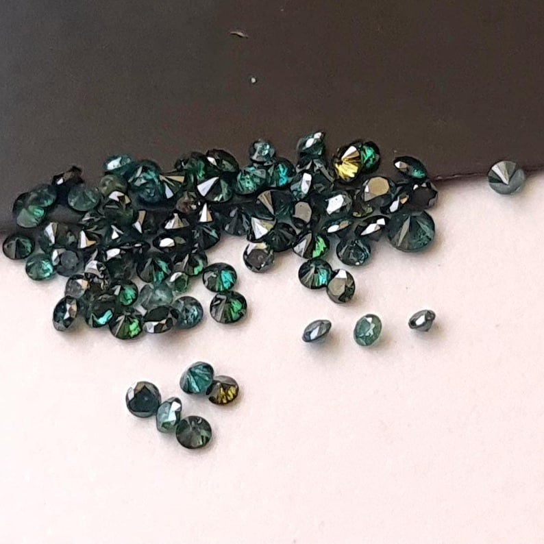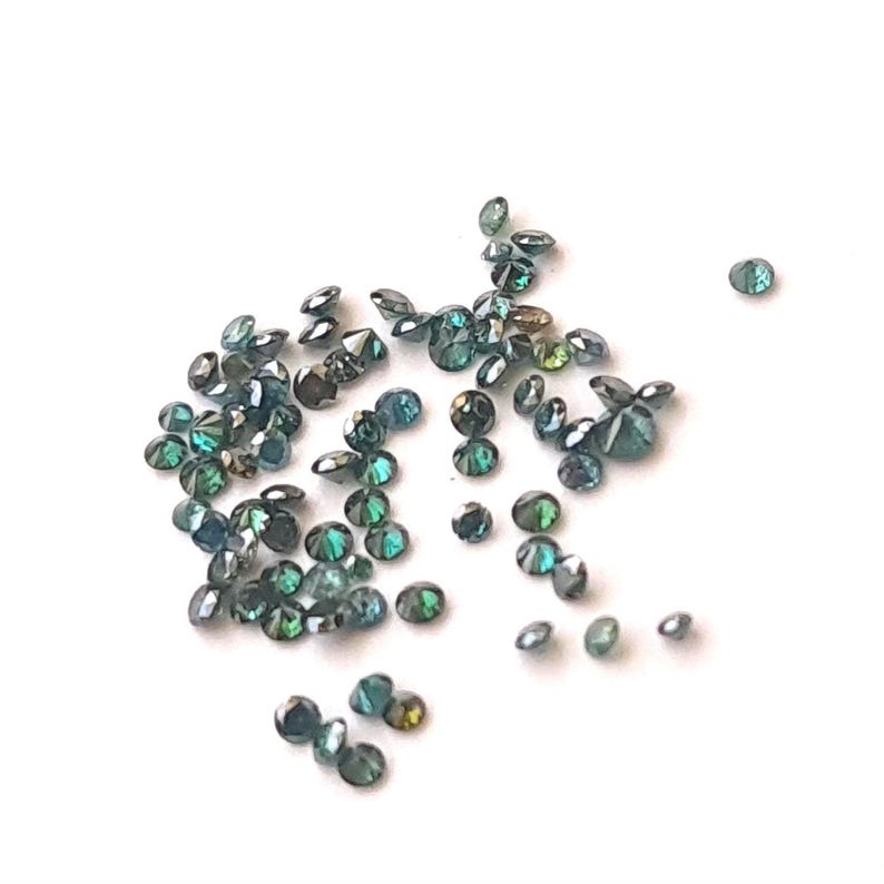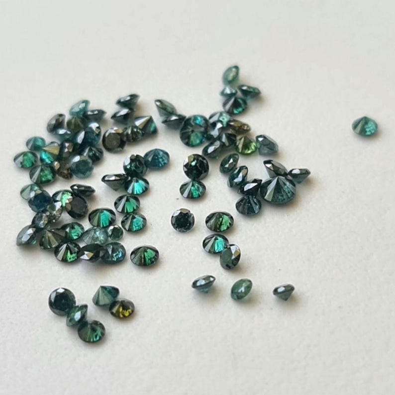 Melee Green Diamonds, 1.5-2mm Round Brilliant Solitaire Faceted Peacock Diamond