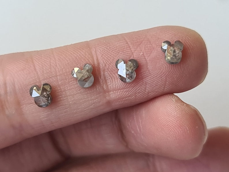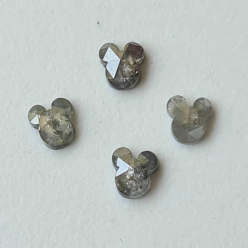 Salt And Pepper Mickey Mouse Ears Head Polished Diamond, Loose Fancy Faceted Diamond Charm Gift, Statement Jewelry, 1 Piece Pendant - PDD901