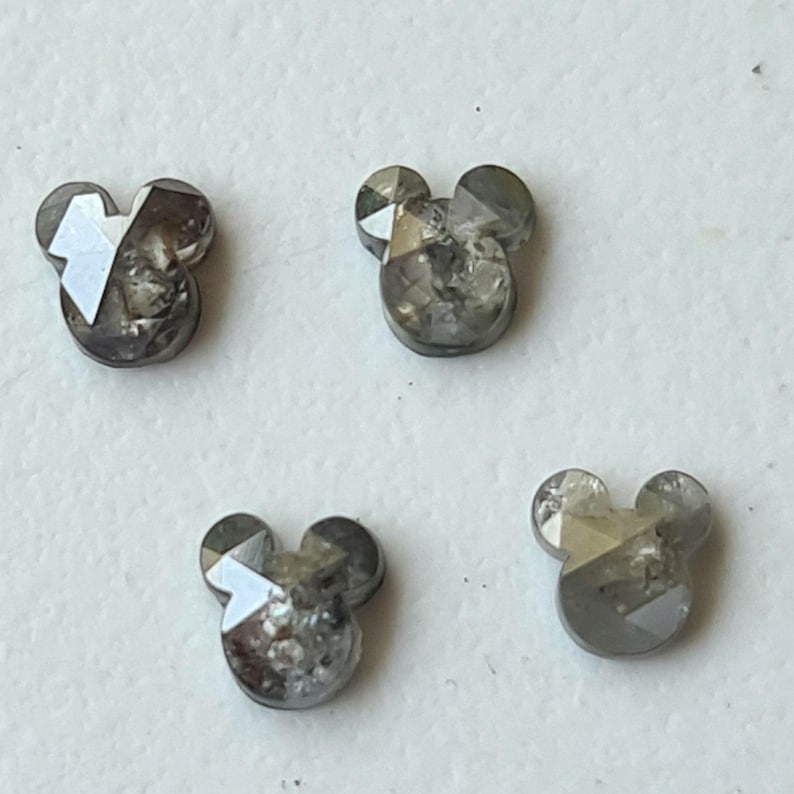 Gemstone: Salt And Pepper Diamond Mickey Mouse Ears Faceted Polished Diamond (CONFLICT FREE)