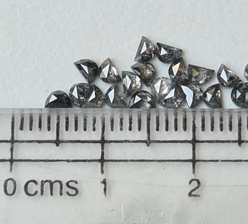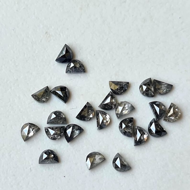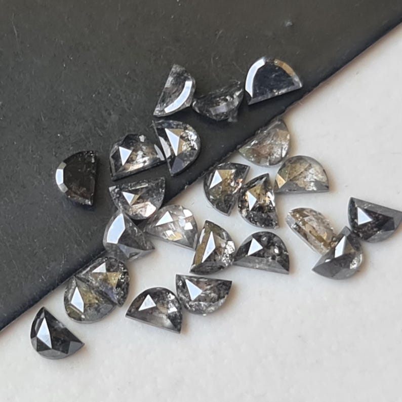 3mm Black Salt and Pepper Half Crescent Moon Rose Cut Diamond Loose Cabochon, Calibrated D Shape Diamond (1Pc to 2Pcs) - PDD906