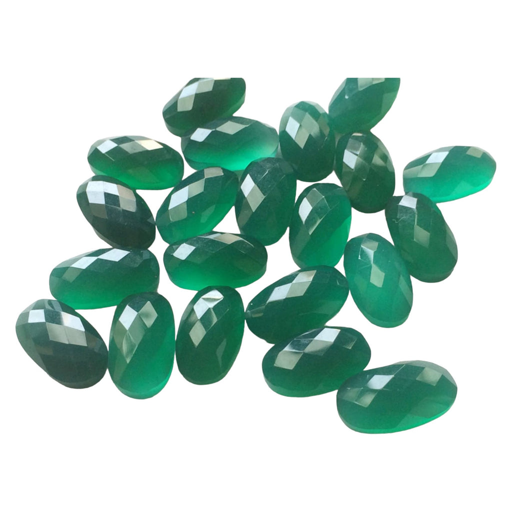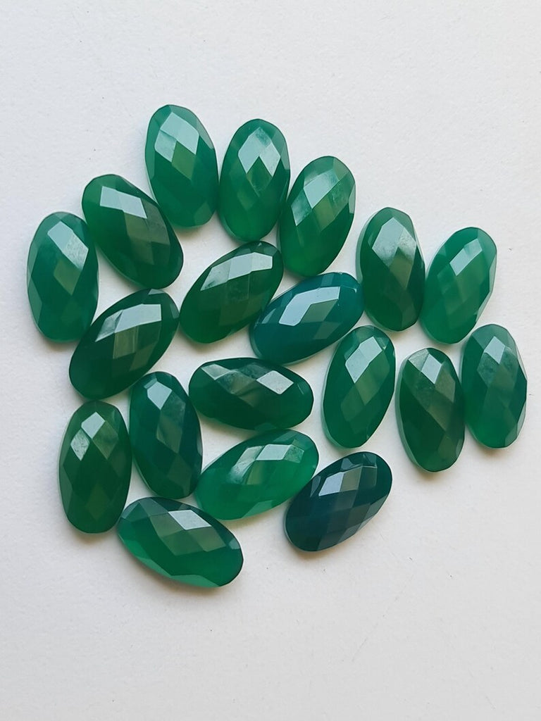 This listing is for 10x18mm Green Onyx Oval Rose Cut Flat Back Cabochons, Faceted Green Onyx Cabochon, Calibrated Green Onyx For Jewelry (5Pcs To 10Pcs Option)