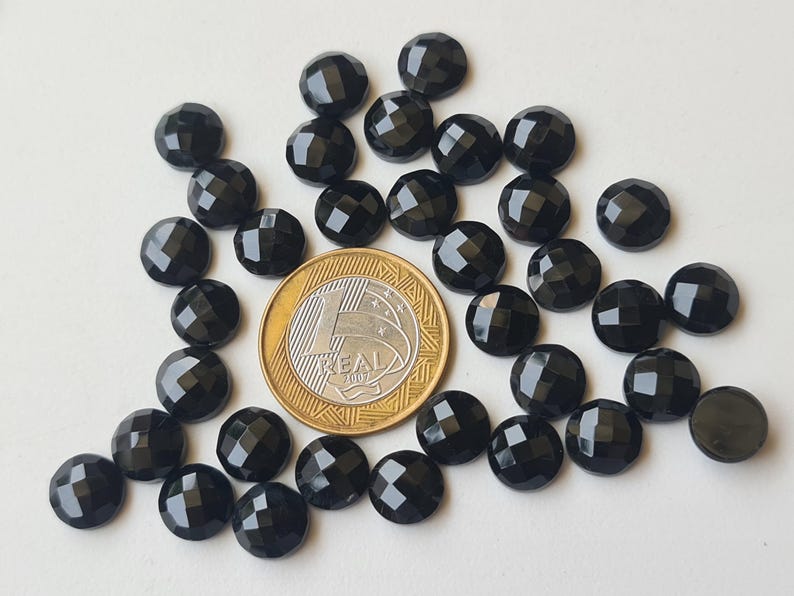 This listing is for 10mm Black Onyx Rose Cut Round Cabochon, Black Onyx Faceted Flat Back Gemstones, Black Onyx Round Gems For Jewelry (5Pcs To 20Pcs Options)