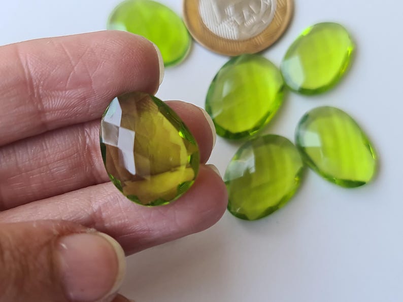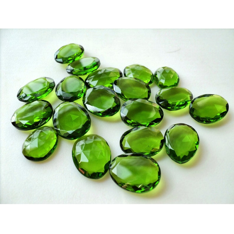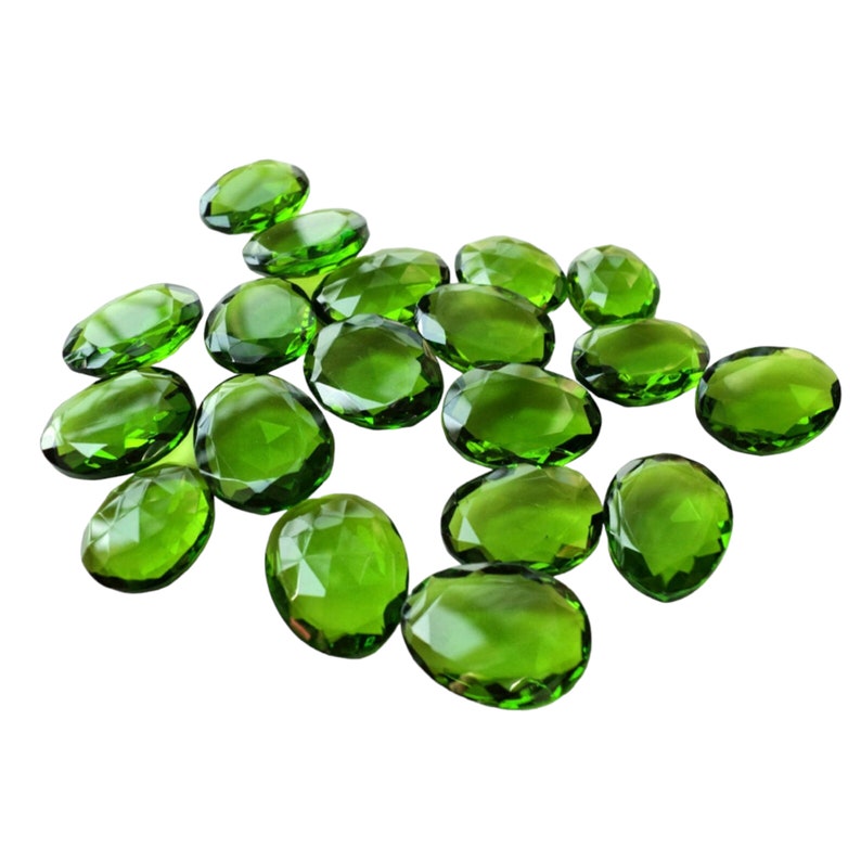 12x15mm To 15x20mm Peridot Colored Hydro Quart Rose Cut Flat Back Cabochons