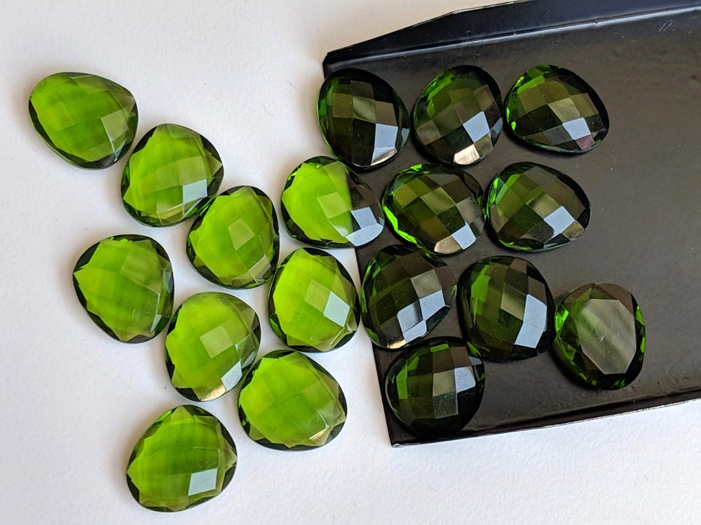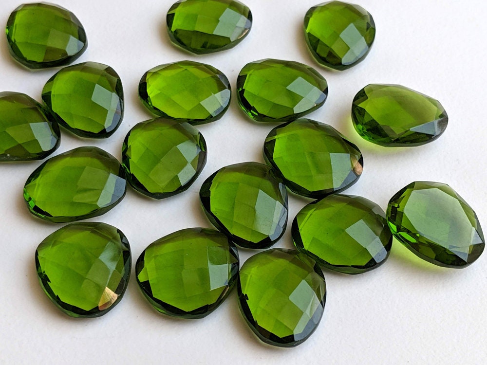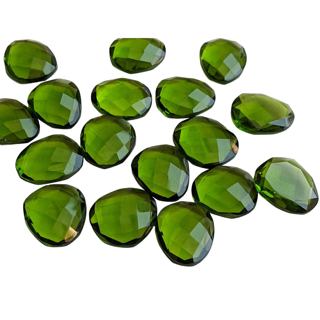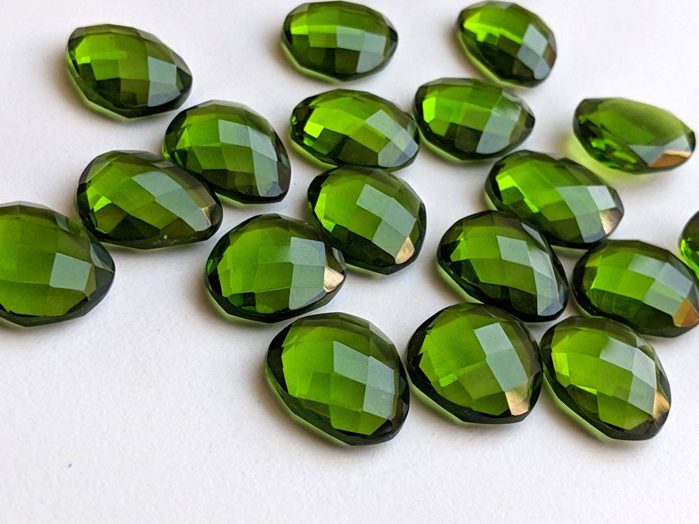 Colored Quartz Rose Cut Flat Back Cabochons, Peridot Hydro Rose Cut, Hydro Cabochon For Jewelry (5Pcs To 10Pcs Options)