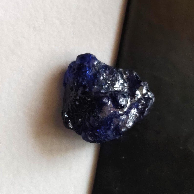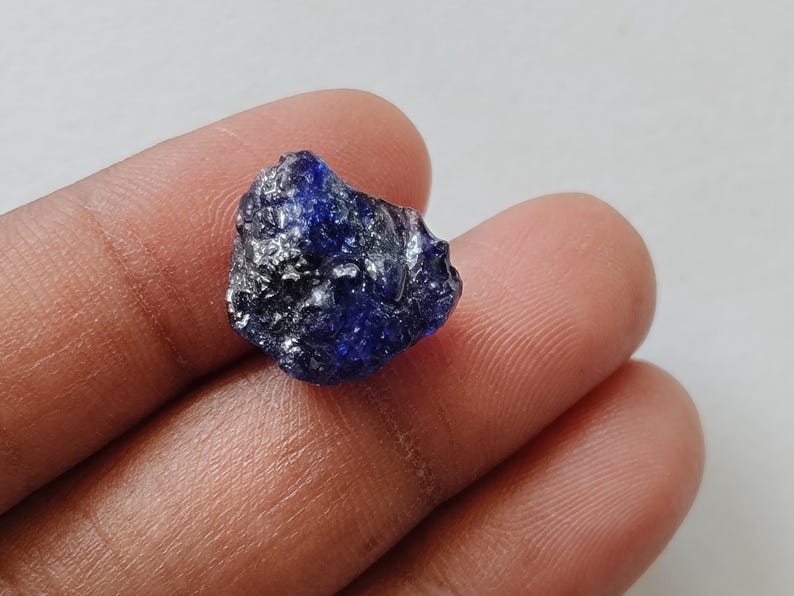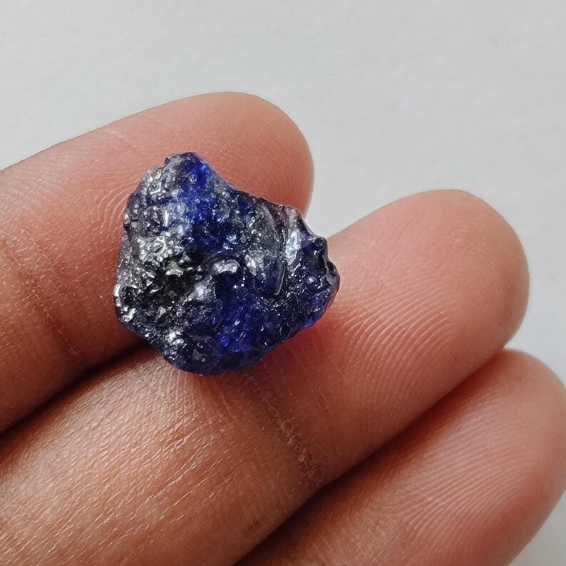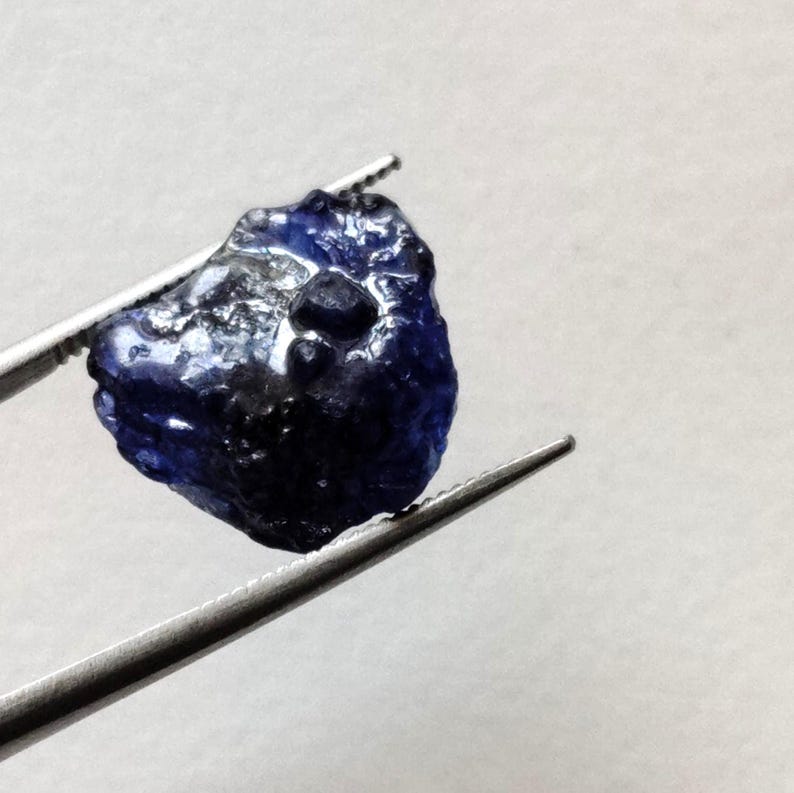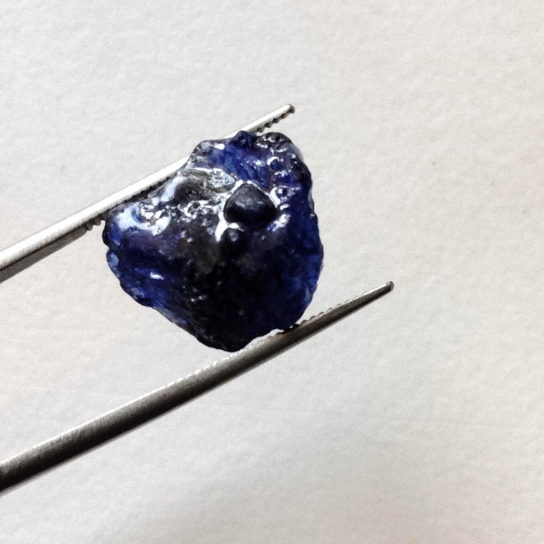 14x12.5mm Blue Sapphire Rough Slice, Loose Raw Blue Sapphire Slice Gemstone for Pendant / Jewelry, 1 Pc - PDG365