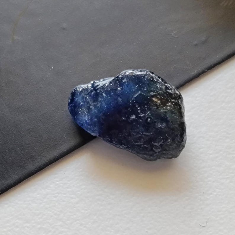 14.6x9mm Blue Sapphire Rough Slice, Raw , Loose Raw Blue Sapphire Slice Gemstone for Pendant / Jewelry, 1 Pc - PDG366
