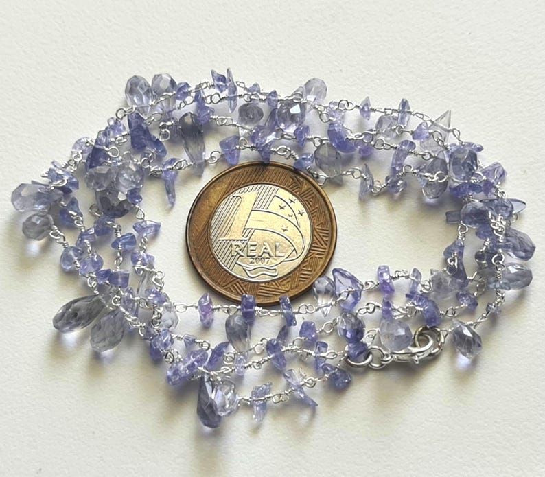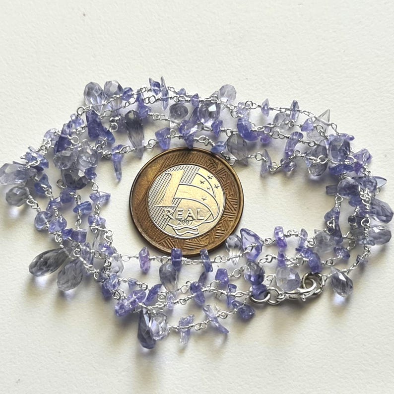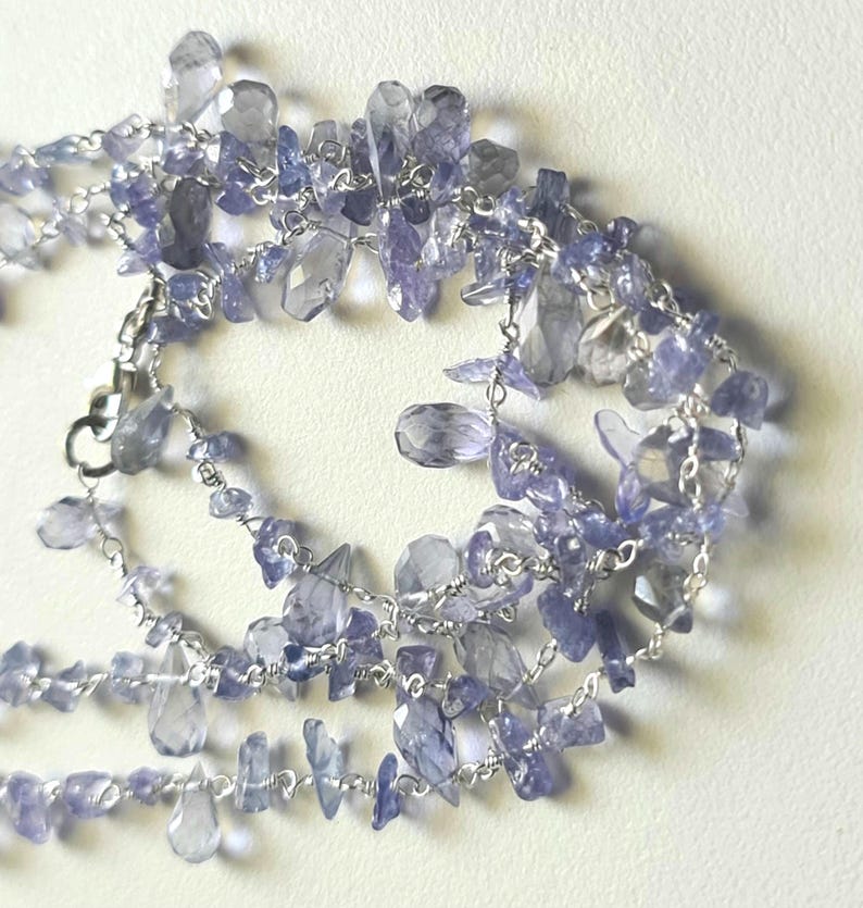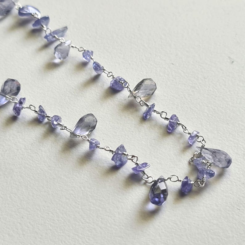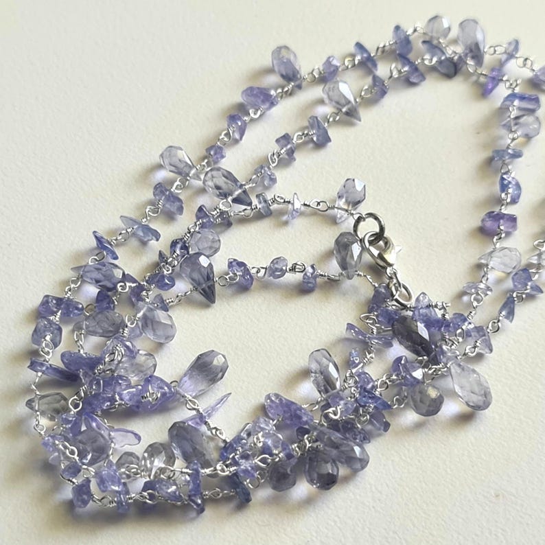 Tanzanite Rough Beads 3-5mm & Drop 4x6-5x8mm Wire Wrapped Beaded Rosary Chain 925 Silver Tanzanite Rosary Chain, Tanzanite Necklace - PSG380