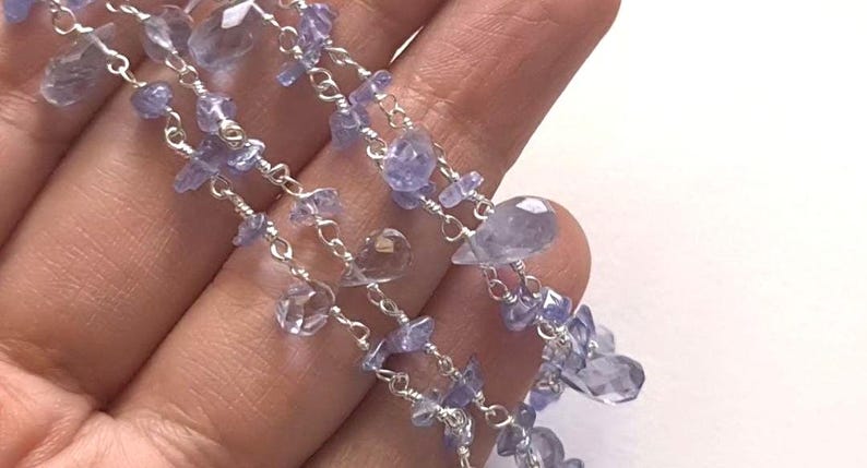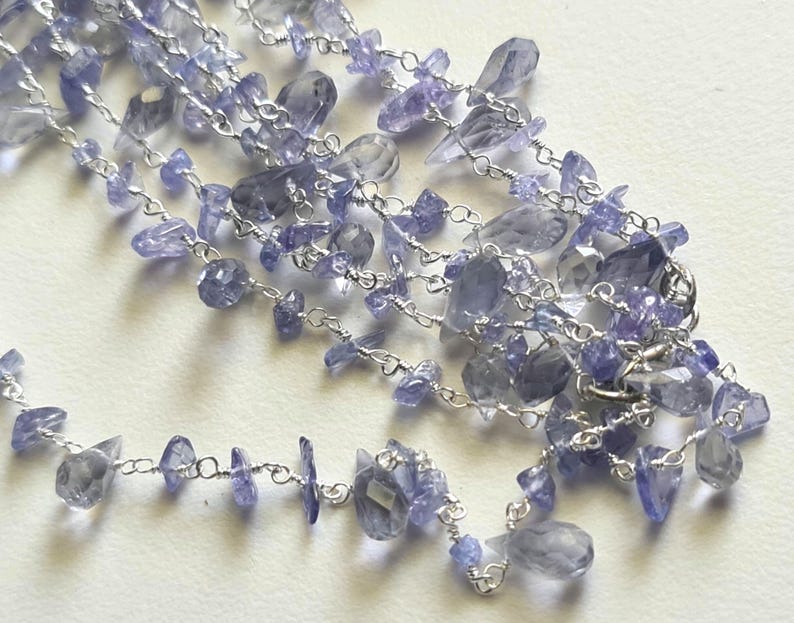 Tanzanite Rough Beads 3-5mm & Drop 4x6-5x8mm Wire Wrapped Beaded Rosary Chain 925 Silver Tanzanite Rosary Chain for Necklace - PSG380