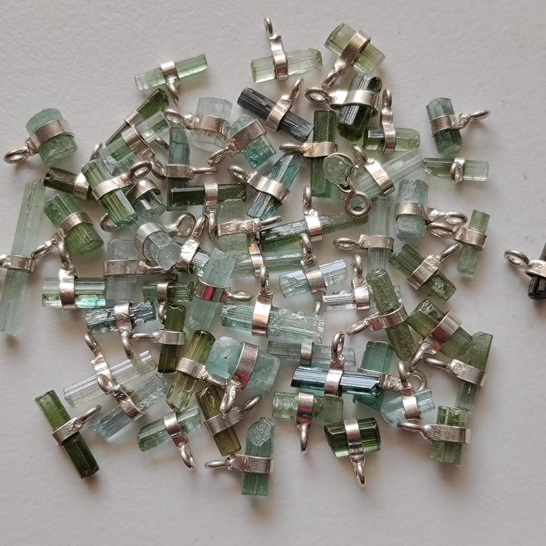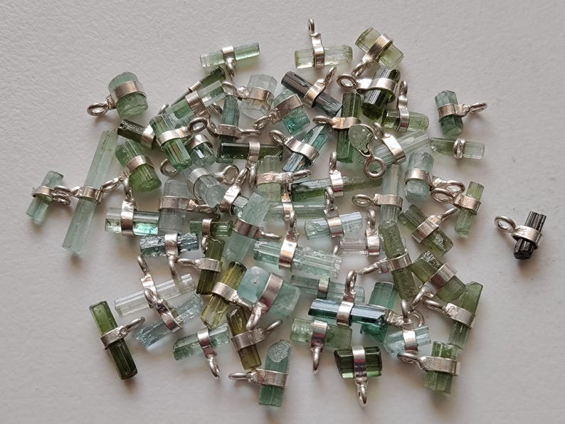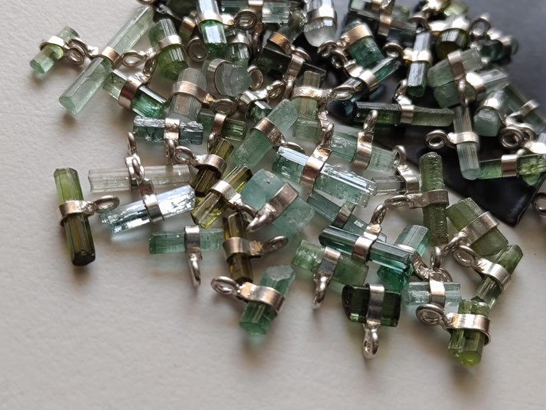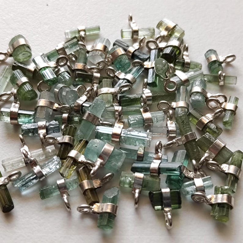 7-12mm Blue Green Tourmaline Sticks Single Loop Connectors, 5 Pcs Natural Tourmaline 925 Silver Connectors Finding Silver Charm - PSG391
